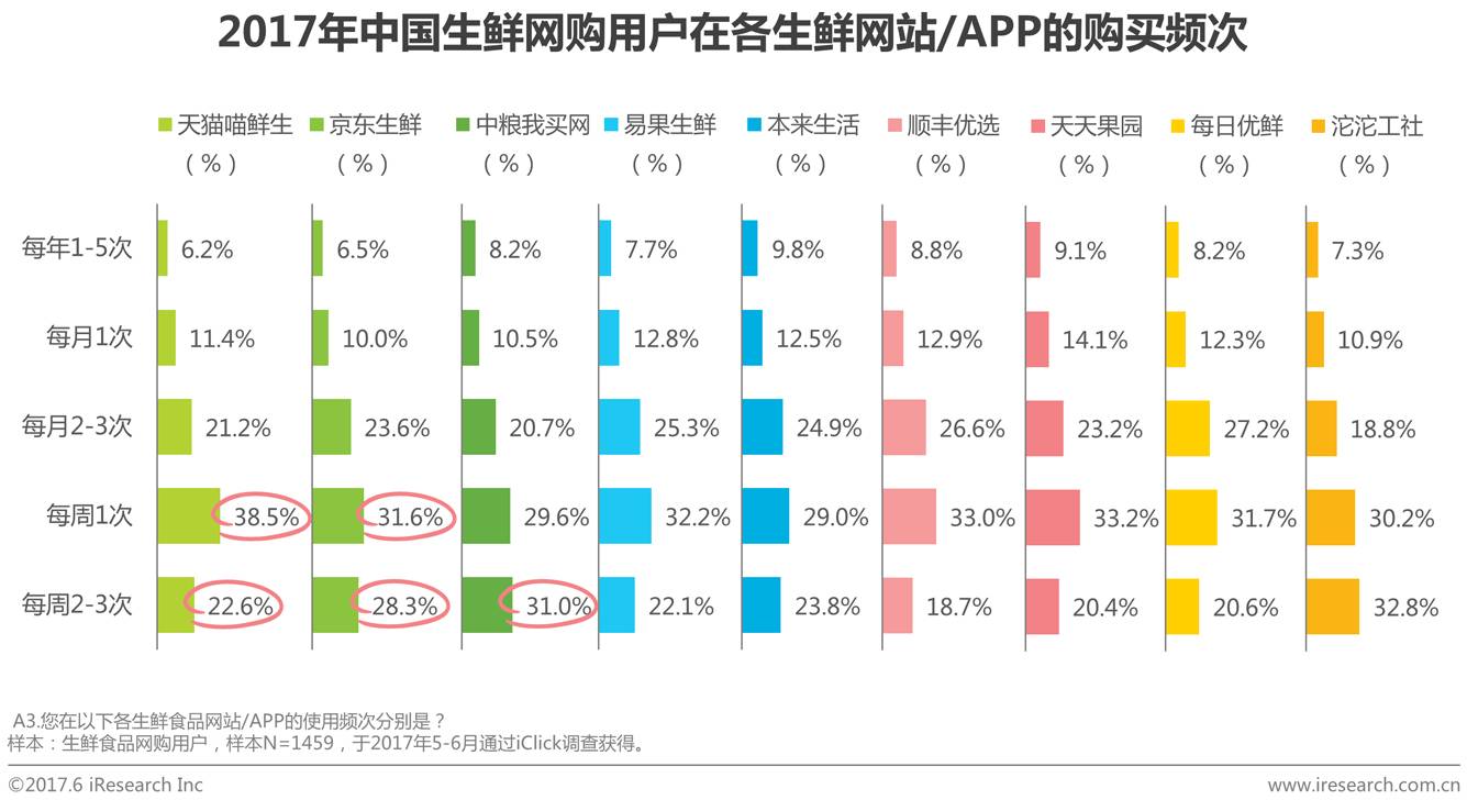 ▌京东、天猫、中粮我买网为三大高频有机生鲜购买网站