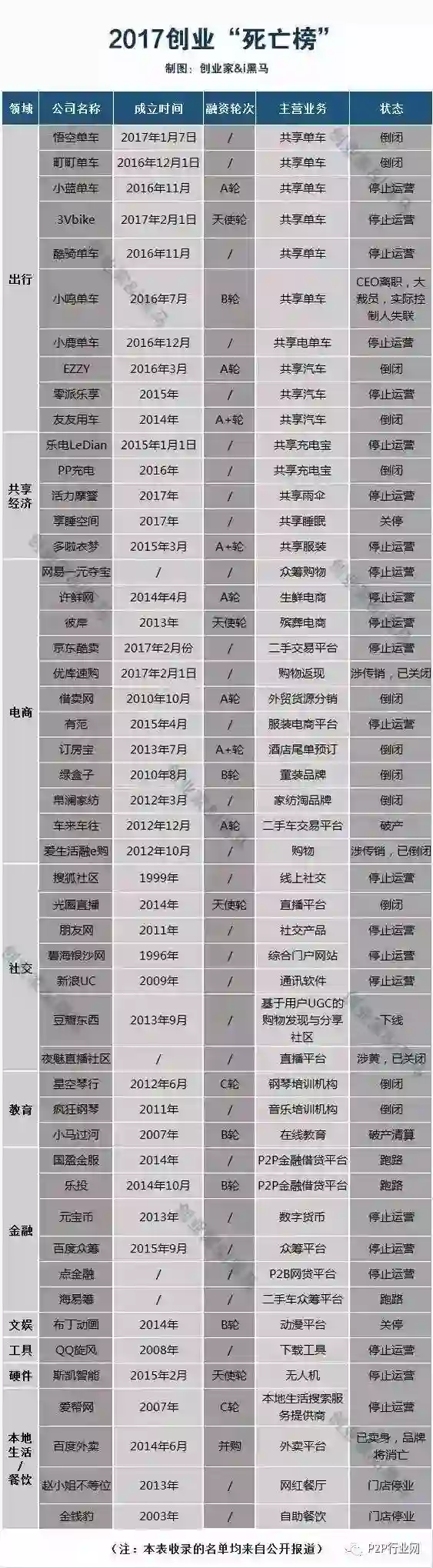 2017年即将结束,我们盘点了这一年中未能活下来的创业项目,历来称作“创业死亡榜”。其中,你能看到的项目的创始人,在启动之时大多饱含热忱,死亡来临前一刻也曾奋力争取生机。