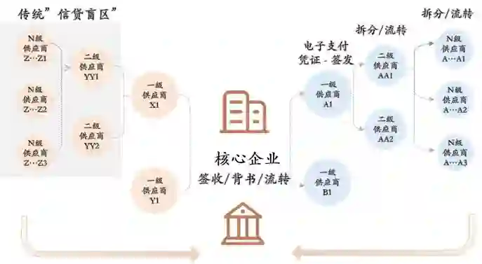从产业角度看,绝大多数的中小企业均处于某一供应链垂直场景中,通过整合供应链中的信息流、资金流和物流来解决信息不对称问题,将核心企业信用分享传导至供应链长尾端中小企业来解决增信难题,有望成为破解这一传统难题的突破口。