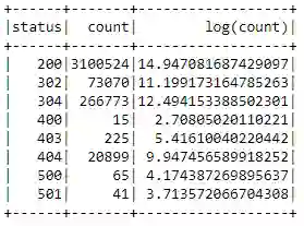 创建一个只包含 404 状态码(未找到)的日志记录 DataFrame。我们确保缓存 cache() 这个 not_found_df 数据框,因为我们将在下面的示例中使用它。你认为日志中有多少 404 记录?