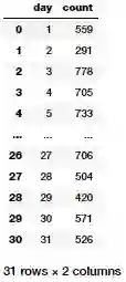 我们希望 DataFrame 中数据按照日期的升序排序,其中包括天和与那一天关联的不同主机的数量。