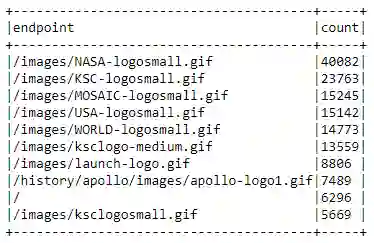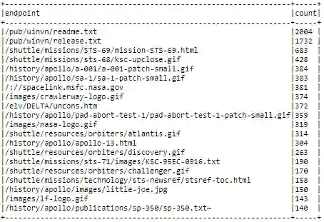 使用只包含 404 响应代码的日志记录 DataFrame,我们现在将打印出产生最多 404 错误的前 20 个端点的列表。记住,这些端点应该是有序的。