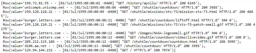 ['01/Jul/1995:00:00:01 -0400','01/Jul/1995:00:00:06 -0400','01/Jul/1995:00:00:09 -0400',...,...,' 01/Jul/1995:00:00:14 -0400','01/Jul/1995:00:00:15 -0400','01/Jul/1995:00:00:15 -0400']
