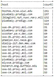 ['199.72.81.55','unicomp6.unicomp.net','199.120.110.21','burger.letters.com',...,...,'unicomp6.unicomp.net','d104.aa.net','d104.aa.net']