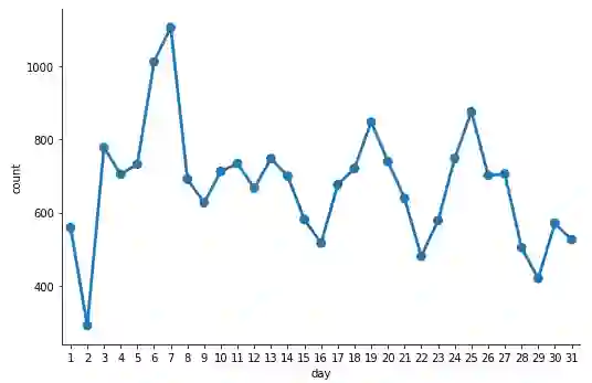 现在让我们临时(按时间)研究一下 404 记录。与显示每日不同主机数的示例类似,我们将按天划分 404 请求,并在 errors_by_date_sorted_df 中按天排序每日计数。