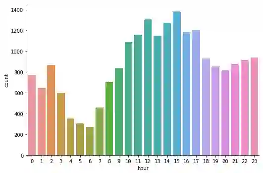使用我们之前缓存的 not_found_df 数据框,现在我们将按小时分组并按天排序,创建一个 DataFrame,其中包含一天中每个小时的 HTTP 请求的 404 响应总数(从 0 点到午夜)。然后,我们会从 DataFrame 构建可视化。