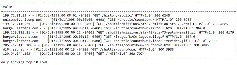 假设我们的数据存储在下面提到的路径中(以平面文件的形式),让我们将其加载到一个 DataFrame 中。我们将分步骤来做。下面的代码获取磁盘中的日志数据文件名。
