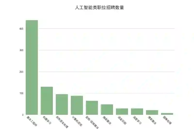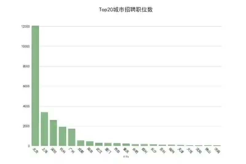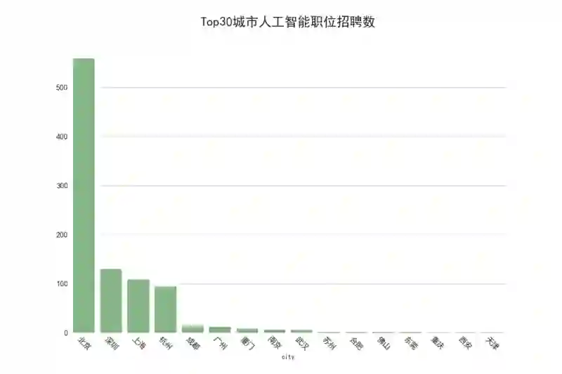 北京依旧是互联网公司趋之若鹜的好地方,人工智能职位招聘数量独占60%,遥遥领先,成都超过广州排名第五。