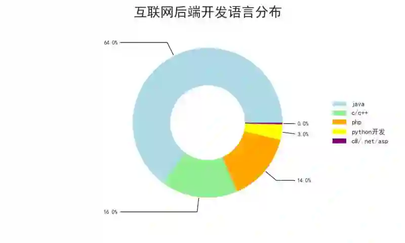在开发语言职位中,与上月相比,Java的需求占比上升至64%,C/C++需求下降为16%。