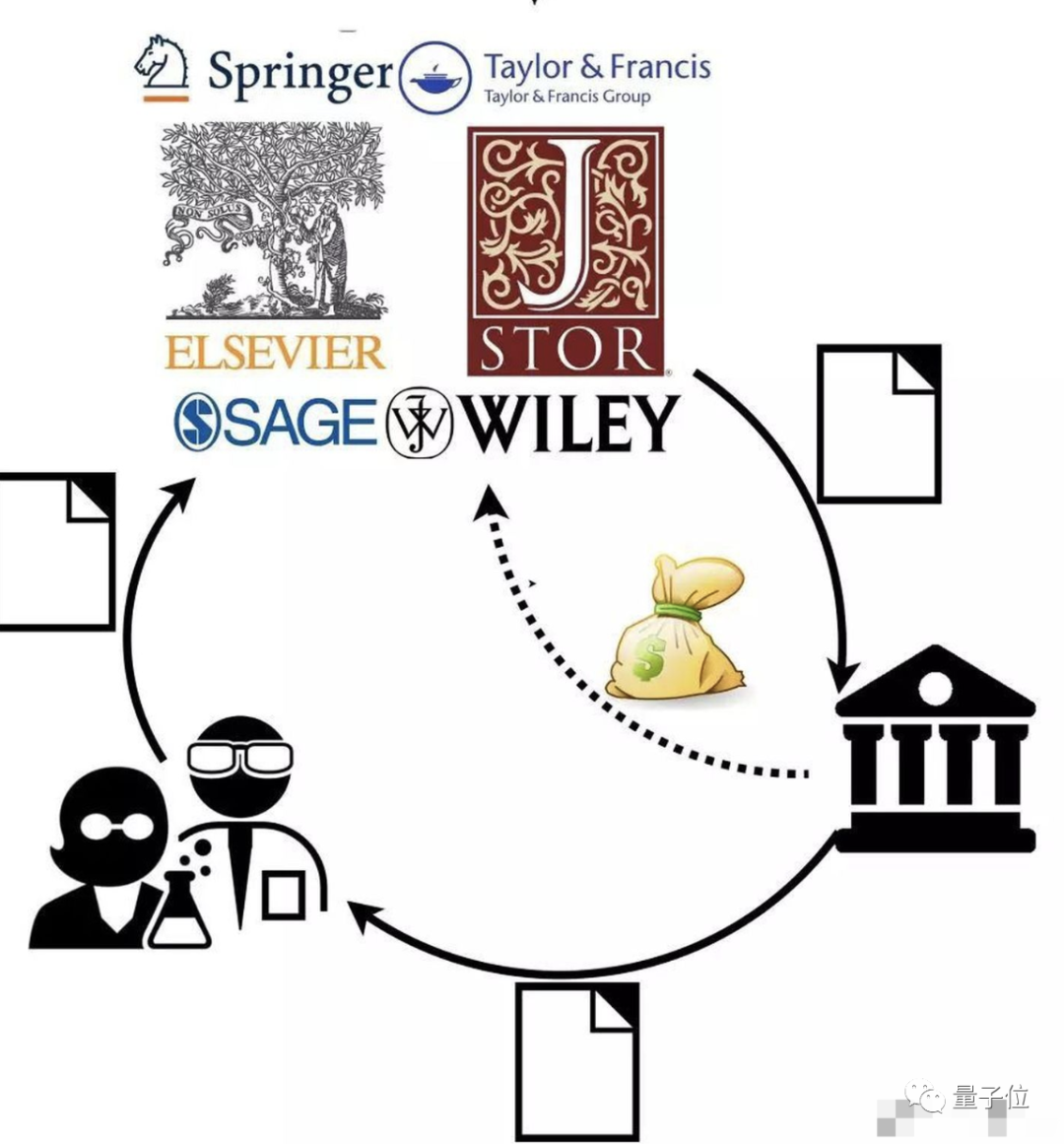 一次是政府给大学和机构拨发的科研资金,第二次是同行评审的酬劳(网友rmoredkitten指出,这笔钱并不是由出版商支付),最后,还有大学或机构向出版商购买资料库的开支。