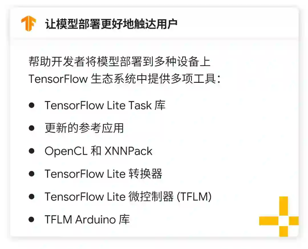 TensorFlow Lite 帮助同一个模型在智能手机、Linux设备和微控制器等多运行环境下部署。