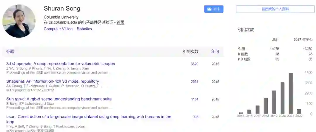 个人主页:https://datascience.columbia.edu/people/shuran-song/
