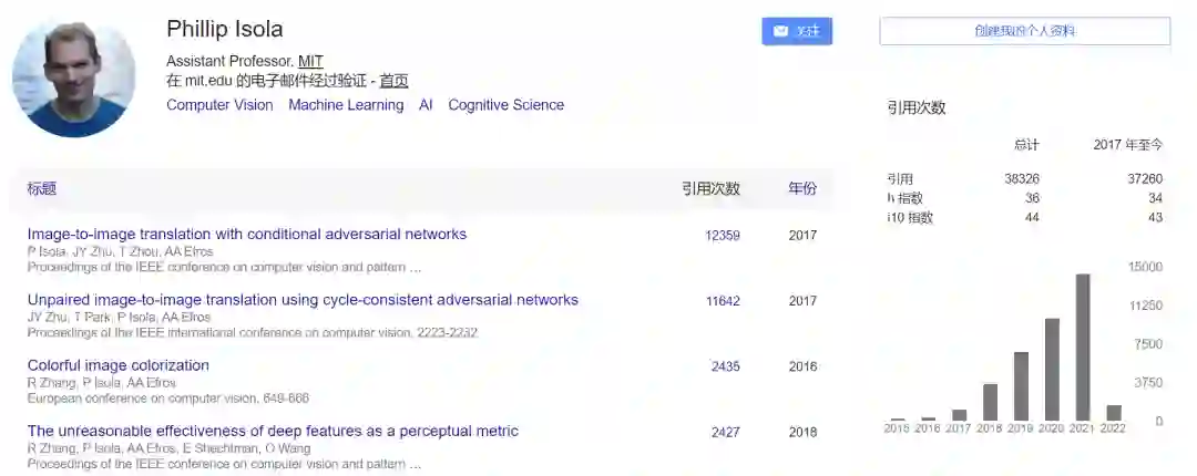 Phillip Isola,麻省理工学院电子工程与计算机科学系助理教授。他曾是 OpenAI 的访问研究科学家、加州大学伯克利分校电子工程与计算机科学系的博士后学者。Phillip Isola 的研究方向主要包括计算机视觉和机器学习,致力于构建更通用的智能体。