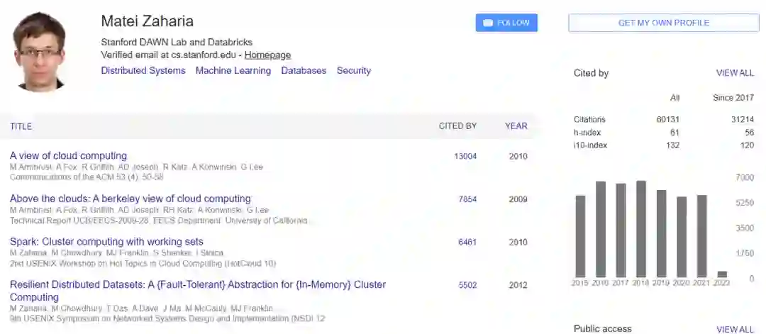Matei Zaharia,斯坦福大学计算机科学学院助理教授,数据和人工智能平台初创公司 Databricks 联合创始人兼首席技术专家。他对用于新兴大规模工作负载的计算机系统感兴趣,如机器学习、大数据分析和云计算,因对大型计算机系统的研究而获得加州大学伯克利分校的计算机科学博士学位和 ACM 博士学位论文奖。