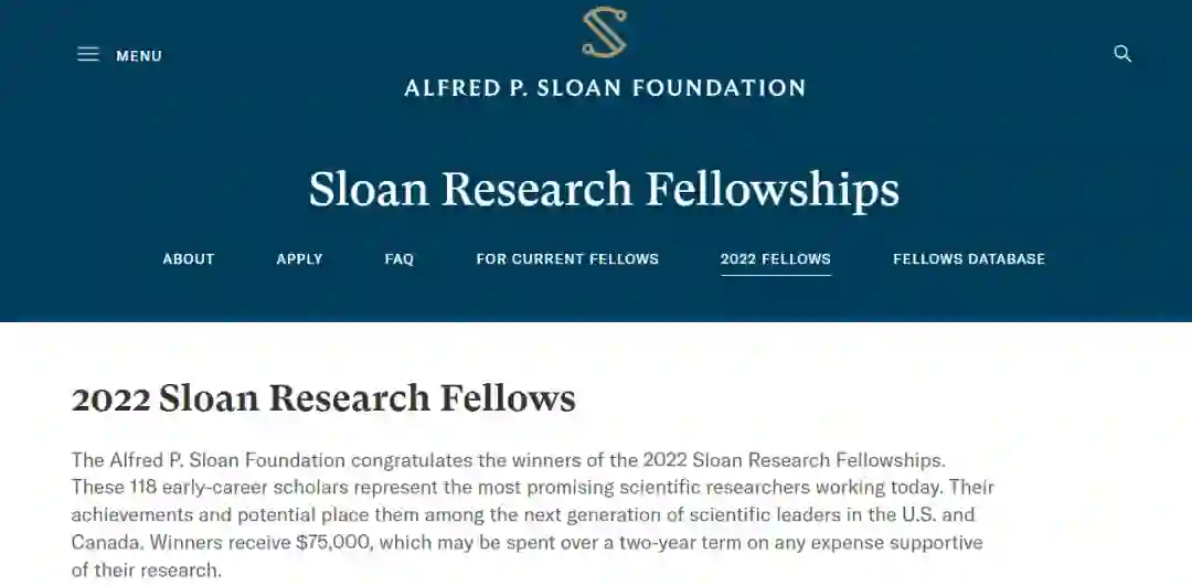 参考链接:https://sloan.org/fellowships/2022-Fellows