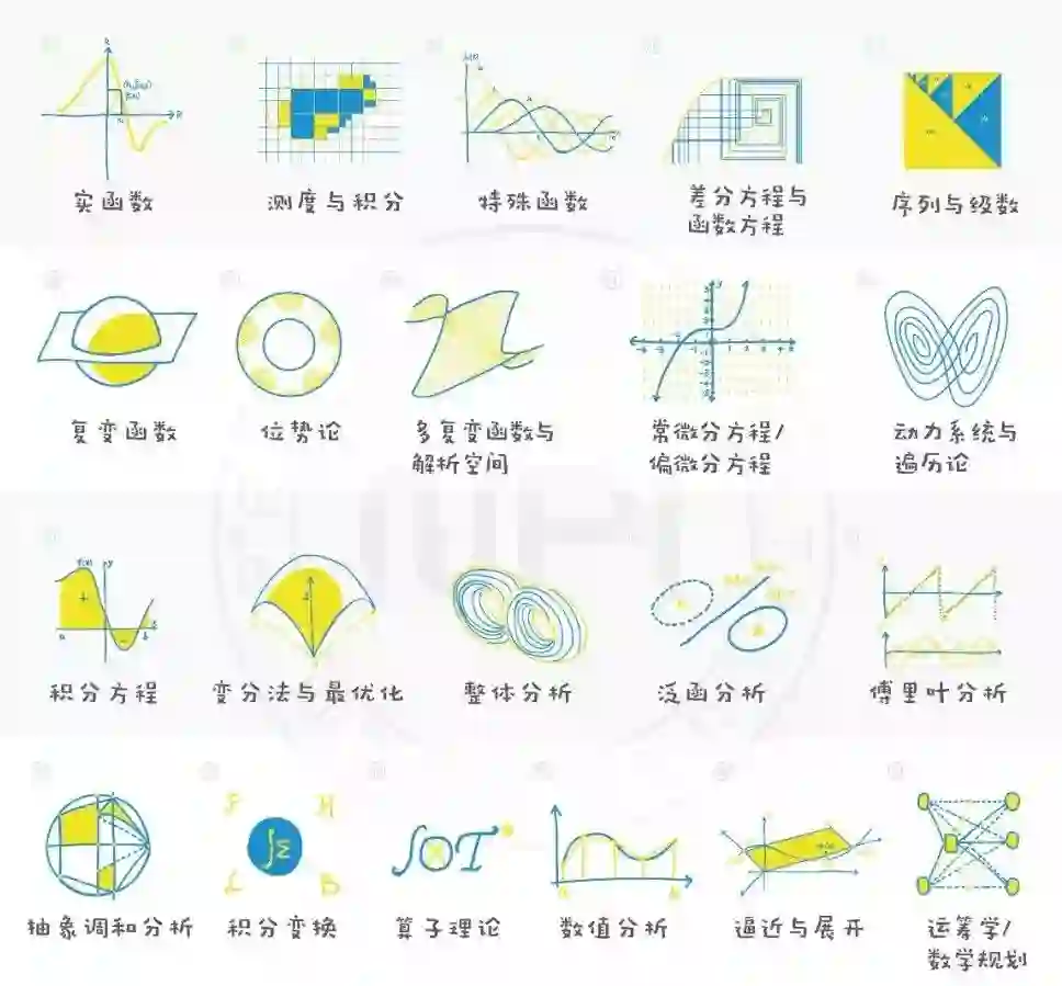 分析学研究的是从微积分和相关领域中获得的结果。我们可以将它进一步划分为5个小部分: