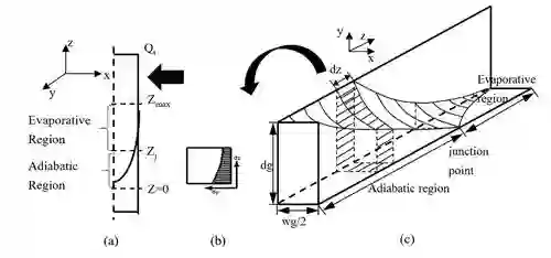 微槽群复合相变换热技术以其换热系数高、工作稳定等特点在大功率LED等战略性先进电子材料领域得到广泛应用,它利用在微槽中液体工质通过毛细力形成的扩展弯月面处三相接触线附近蒸发薄液膜区域的高强度蒸发和固有弯月面处厚液膜区域液体工质的核态沸腾的复合相变换热机理,实现高强度的换热能力,是一种典型的高性能微尺度相变换热技术。