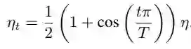 这里,η代表初始设置的学习率。这种学习率递减的方式称之为cosine decay。