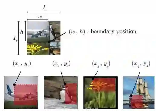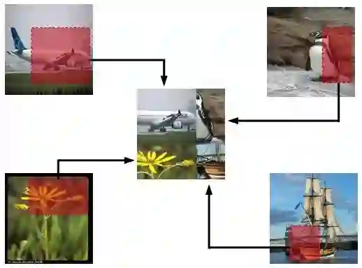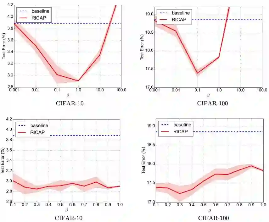 Random image cropping and patching (RICAP)[7]方法随机裁剪四个图片的中部分,然后把它们拼接为一个图片,同时混合这四个图片的标签。