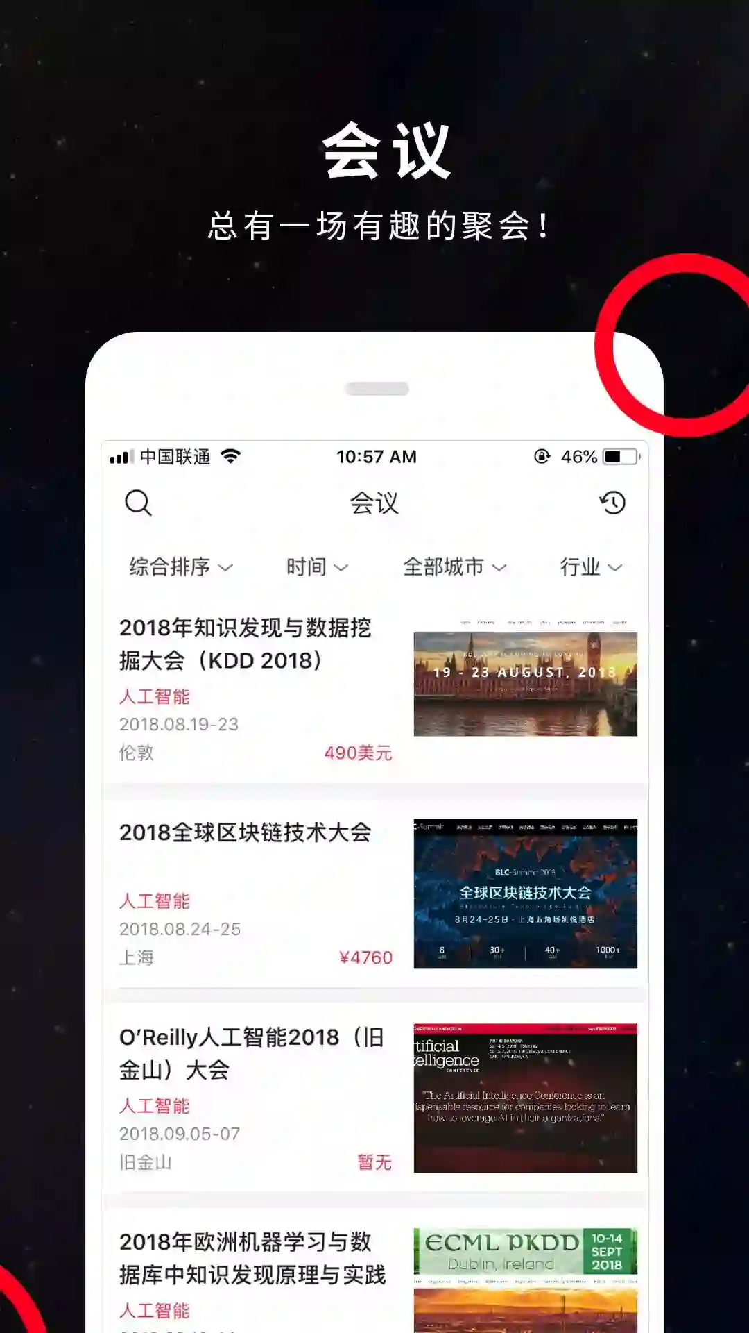 会议版块包含了来自全世界 173 个国家和城市的最新科技产业峰会及线下活动。最新会议信息一网打尽,可以直接选择自己关注的活动报名参与。