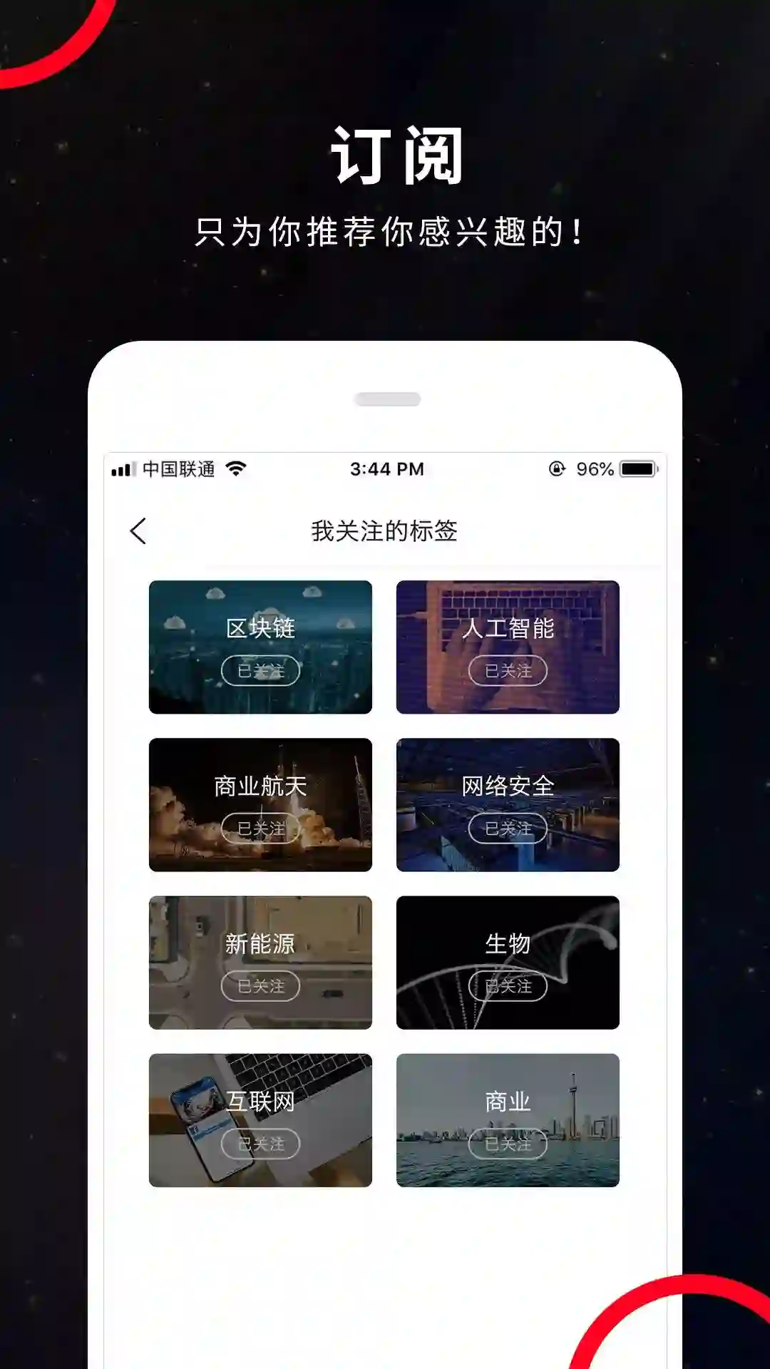 首页设计关注栏目,读者可以自由选择自己感兴趣的关键词,例如芯片、量子、人工智能、生物医疗。这些关键词领域的新闻及深度报道内容,就将在“关注”一栏实时呈现。