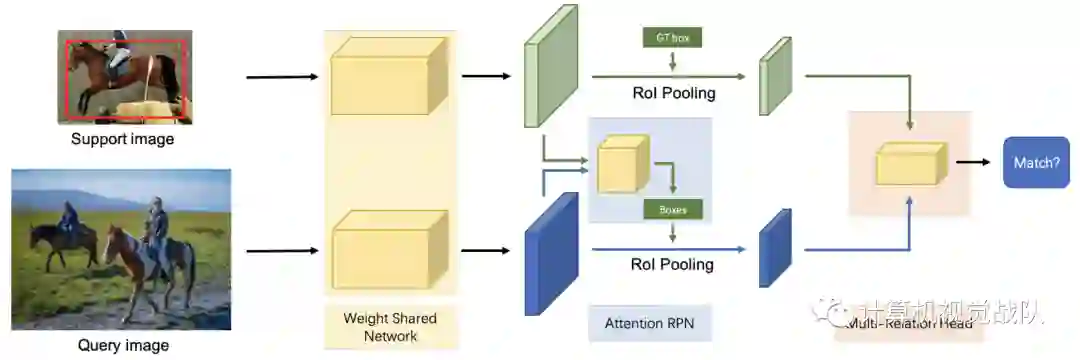 该检测器包括三个注意模块,分别是要学习的全局关系模块在深度嵌入的全局匹配中,局部相关模块学习支持和查询建议之间的像素级和深度互相关,而补丁关系模块则学习深度非线性度量以用于补丁匹配。我们通过实验证明,三个匹配的模块可以相互补充以产生更高的性能。