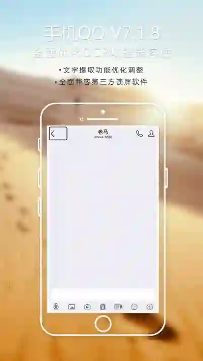 本次,手机QQ V 7.1.8基于文字提取功能进行无障碍沟通专项优化,提升了该功能与读屏软件兼容性,安卓用户安装第三方读屏软件,iOS用户在设置中开启VoiceOver功能,即可在手机QQ提取图中文字后获得文字内容的语音播报。此前,就有视障用户用手机QQ拍摄药瓶的照片,并语音转化提取出的文字,来了解药物功效和如何服用。本次优化对读屏软件的兼容性,更大范围提升用户获取信息的效率,同时为不便于阅读的用户和场景提供无障碍沟通能力,让更多视障用户可以通过该功能同步获取书面信息,旅行者也可以实时播报景点介绍文字等。