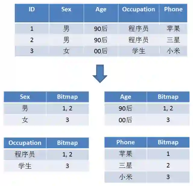 2. 让每一个标签存储包含此标签的所有用户ID,每一个标签都是一个独立的Bitmap。