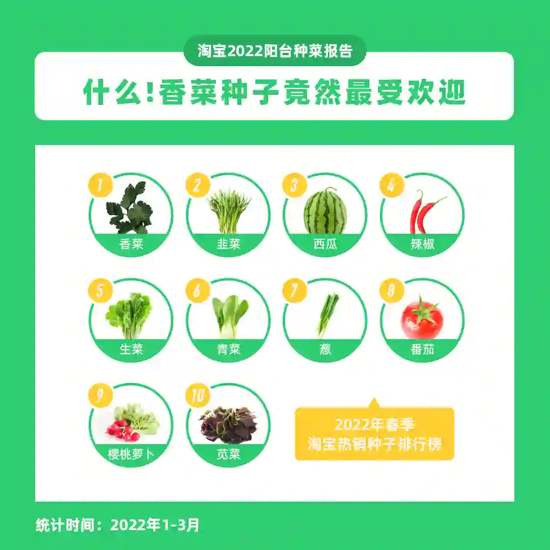 《淘宝2022阳台种菜报告》显示,香菜成今春最受欢迎种子