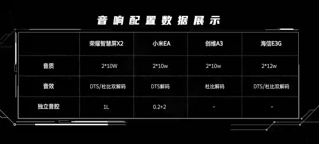 同样没有对比没有伤害的还有音响效果,音响配置和支持的解码我也在表格里列出来给大家,欢迎大家去观看视频中的实录对比,戴上耳机差异会更加明显。