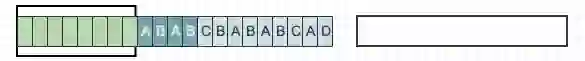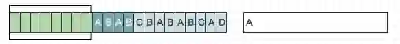 LZ77的主要算法逻辑就是,先通过前向缓冲区预读数据,然后再向滑动窗口移入(滑动窗口有一定的长度),不断的寻找能与字典中短语匹配的最长短语,然后通过标记符标记。我们还以字符ABD为例子,看如下图: