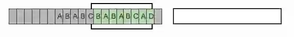 4、缓冲区字符(ABCB)在滑动窗口的位移6位置找到AB,成功匹配到短语AB,将AB编码为(6,2,C)