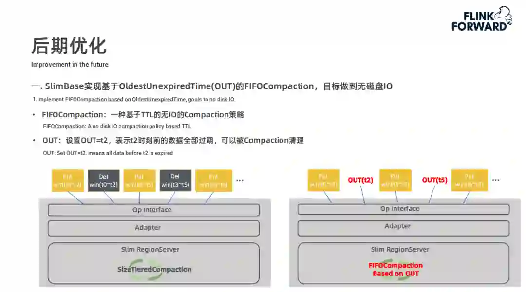 FiFOCompaction 是一种基于 TTL 的无 IO 的 Compaction 策略;OldestUnexpiredTime 是指例如设置 OldestUnexpiredTime=t2,表示 t2 时刻前的数据全部过期,可以被 Compaction 清理,基于时间点的 FIFOCompaction 理论上可以做到无磁盘 IO 开销。