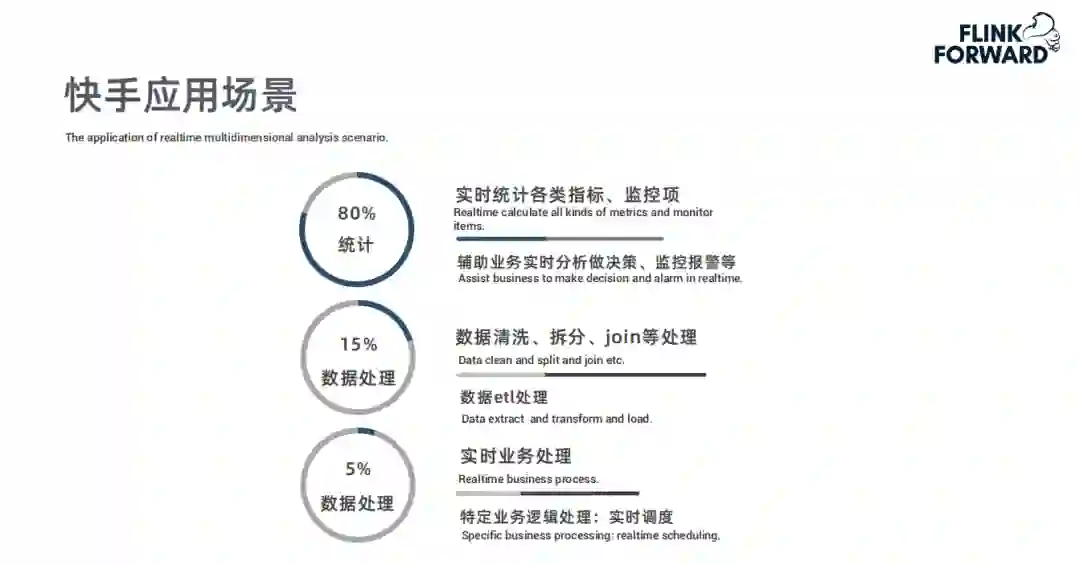 15% 数据处理:对数据的清洗、拆分、Join 等逻辑处理,例如大 Topic 的数据拆分、清洗;