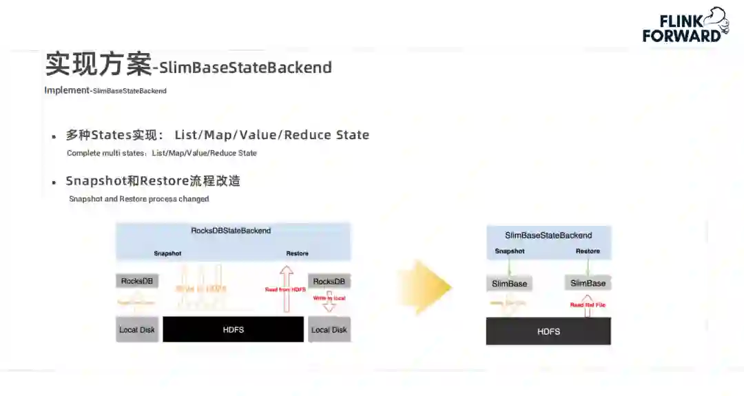 SlimBaseStateBackend 实现上主要体现在两个方面: