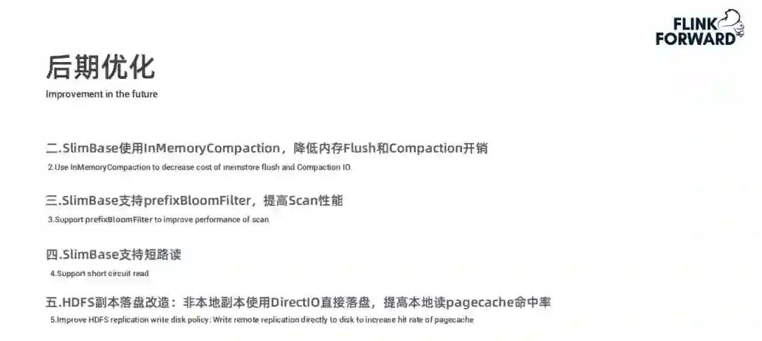 后续还有四点优化,前三点是基于 HBase 的优化,最后是针对 HDFS 做的优化: