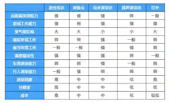 下面我们来了解一下每类传感器的特性,以及在机器人和自动驾驶汽车中的使用差异。