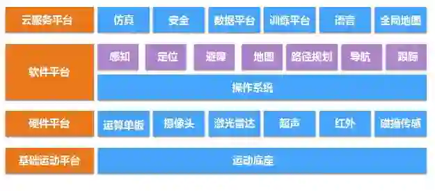 软件平台包括操作系统和上层算法。目前主流的机器人操作系统是ROS,ROS是Willow Garage公司在2010年发布的开源机器人操作系统,由于其具有点对点设计,不依赖于编程语言,分布式架构,强大的硬件抽象,广泛的社区参与贡献,丰富的可复用,知名的开源库资源,已经成为机器人设计的不二选择。对于低速运动场景,原生的ROS环境完全满足设计要求。
