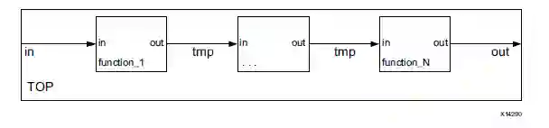 Dataflow是另外一种在函数之间进行并行优化的方式。下图是没有进行Dataflow并行计算优化的模块,函数间依次处理一组数据,所有处理流程结束后,input接口才会允许进行下一组数据。