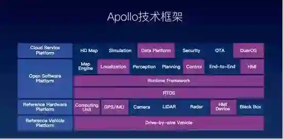 开源软件平台包括操作系统和上层算法。Apollo 采用 ROS 操作系统。 其中ROS是做了定制化修改的,使得其能更适合自动驾驶的要求,后面的连载文章中会详细介绍。