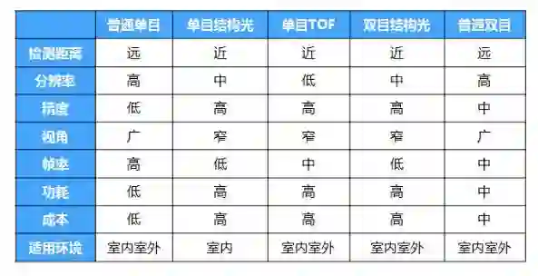 由上表对比可知,无论是结构光还是TOF方案,都需要增加主动光,因此,其检测距离受到了光强度的限制,无法适用于远距离的检测,一般只用于机器人的感知,而普通单目和双目摄像头除了在机器人上应用,还可以用于ADAS和自动驾驶汽车上。