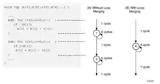 Latency是处理一组数据的时间,这是体现算法实时性的重要指标。HLS可以通过设置编译选项来设置一个函数的Latency,优化函数处理时间。另外,还可以通过合并loop来优化Latency,因为每个C语言的loop都会被综合成一个或多个状态机,而多个状态机级联的时候一定会增加额外的处理延迟。我们可以使用merge指令来合并多个状态机,优化整体处理Latency。