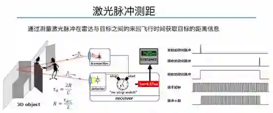 所谓飞行时间法3D成像,是通过给目标连续发送光脉冲,然后用传感器接收从物体返回的光,通过探测光脉冲的飞行(往返)时间来得到目标物体的距离。这种技术跟3D激光传感器原理基本类似,只不过3D激光传感器是逐点扫描,而TOF相机则是同时得到整幅图像的深度信息。