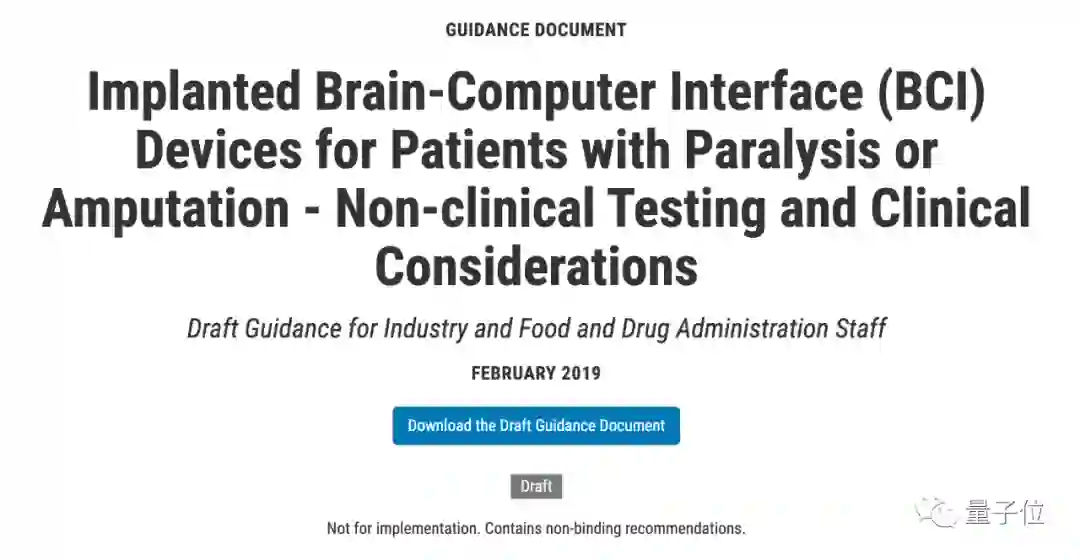 2019年2月,FDA颁布了《瘫痪或截肢患者的BCI设备非临床测试和临床考虑》,为瘫痪或截肢患者植入BCI设备的问题和研究设备豁免提供了草案建议。
