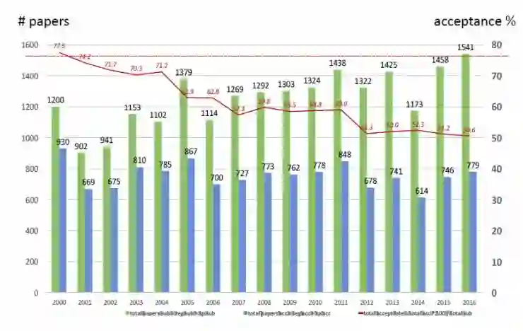 下图为历年Interspeech论文收录情况,过去三年收录文章的数量分别为614、746、779。