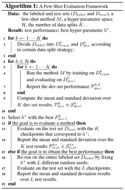 (1)提出一个新的小样本自然语言理解评价框架 FewNLU,并且从三个关键方面(即测试集小样本学习性能、测试集和验证集相关性、以及稳定性)量化评估该评价准则的优势。