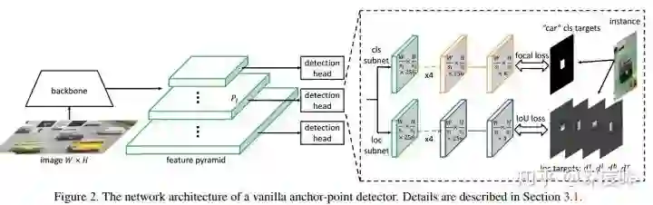 FCOS堪称anchor free论文的典范,因为其结构主流,思路简单清晰,效果蛮好,故一直是后续anchor free的基准对比算法。FCOS的核心是将输入图像上的位置作为anchor point的中心点,并且对这些anchor point进行回归。