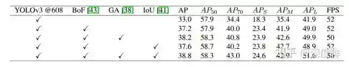 首先采用基于Bag of freebies for training object detection neural networks里面提出的训练策略来改进性能,主要包括 the mixup algorithm , the cosinelearning rate schedule和 the synchronized batch normalization。 其次,由于最新论文表示iou loss对于边界框回归效果好,故作者也额外引入了一个iou loss来优化bbox。最后,由于GA论文(Region proposal by guided anchoring)指出采用语义向导式的anchor策略可以得到更好的结果,故作者也引入了GA操作来提升性能。可以看出,结合这些策略后,在coco上面可以得到38.8的mAP,速度仅仅慢了一点点(多了GA操作),可谓是非常强大,这也反应出训练策略对最终性能的影响非常大。