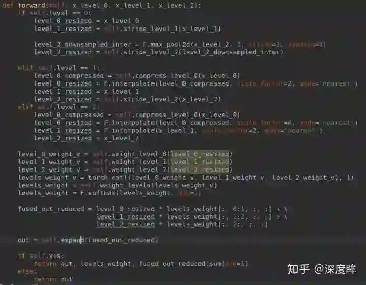 本文先分析不那么重要的部分,即本文最大改进ASFF(Adaptively Spatial Feature Fusion)操作,其实熟悉BiFpn的人应该马上就能get到idea了,我觉得本质上没有啥区别。FPN操作是一个非常常用的用于对付大小尺寸物体检测的办法,作者指出FPN的缺点是不同尺度之间存在语义gap,举例来说基于iou准则,某个gt bbox只会分配到某一个特定层,而其余层级对应区域会认为是背景(但是其余层学习出来的语义特征其实也是连续相似的,并不是完全不能用的),如果图像中包含大小对象,则不同级别的特征之间的冲突往往会占据要素金字塔的主要部分,这种不一致会干扰训练期间的梯度计算,并降低特征金字塔的有效性。