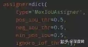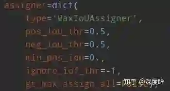 其定义anchor与gt的iou小于0.5的就全部认为是负样本,大于0.5的最大iou样本认为是正样本anchor,同时由于min_pos_iou=0以及gt_max_assign_all=False,可以发现该设置的结果是每个gt可能和多个anchor匹配上,匹配阈值比较低,且每个gt一定会和某个anchor匹配上,不可能存在gt没有anchor匹配的情况,且没有忽略样本。总结下意思就是: